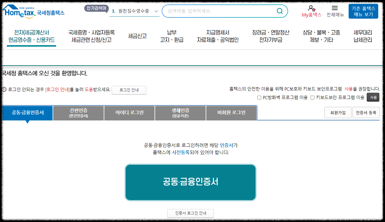 먼저 홈택스 접속 후 로그인을 합니다.
