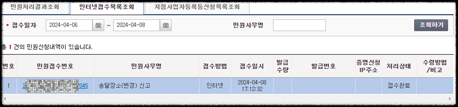 바로 접수된 민원을 확인할 수 있습니다.