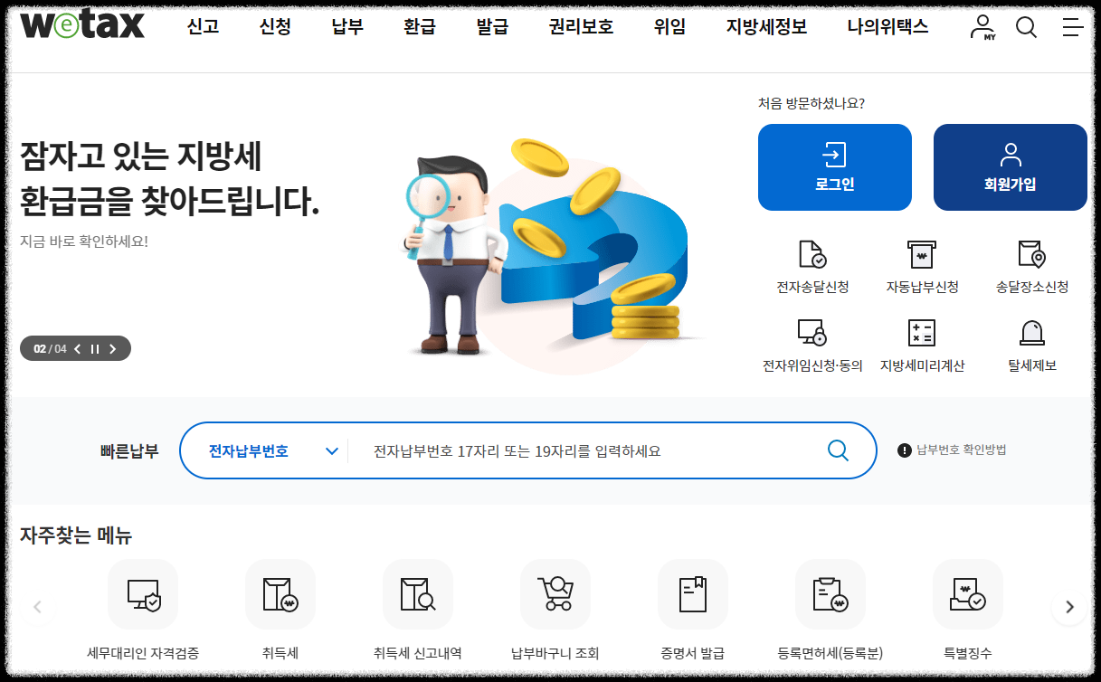 위택스 홈페이지에 접속해서 메뉴를 보면 누구나 쉽게 처리할 수 있습니다.