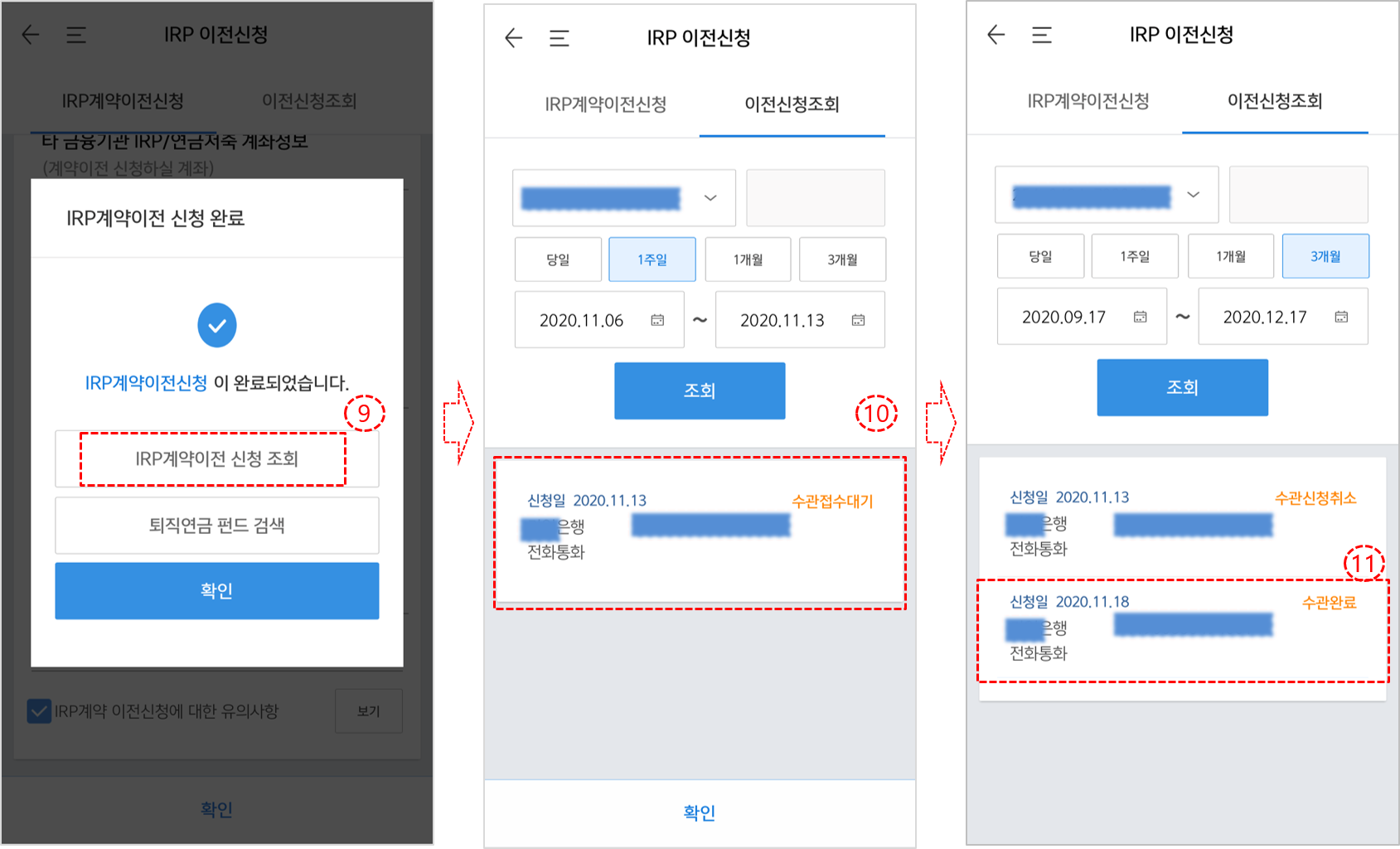 ③ 이전 완료를 위해 신청일 +1 영업일까지 이체하는 금융기관의 전화 녹취 또는 방문을 완료해야 한다.