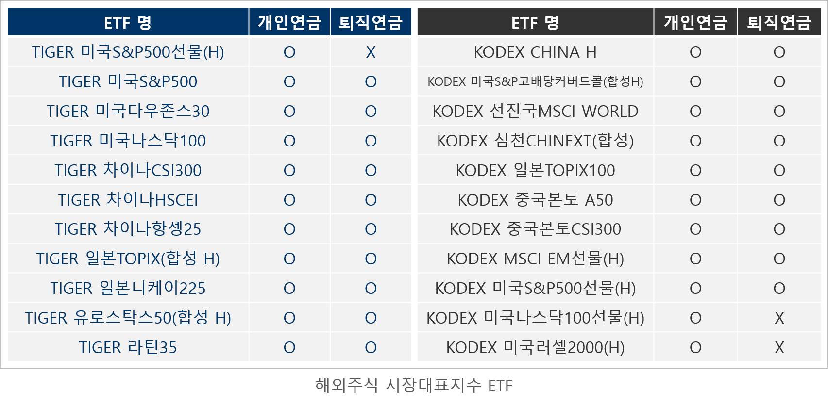 이중 ‘TIGER 미국S&P500선물(H)와 KODEX 미국나스닥100선물(H), KODEX 미국러셀2000(H) ETF는 퇴직연금 계좌에서 거래할 수 없는 상품입니다.