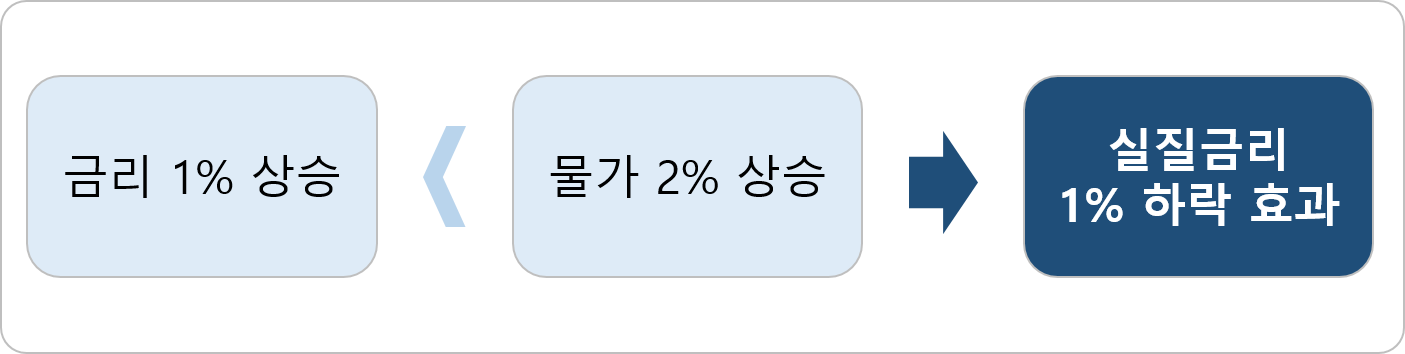 금리가 상승한 경우 채권가격이 하락할 수 있는데, 금리상승분 보다 물가상승률이 더 큰 경우 금리 상승분을 상쇄시켜 실질가치 상승을 기대할 수 있습니다.